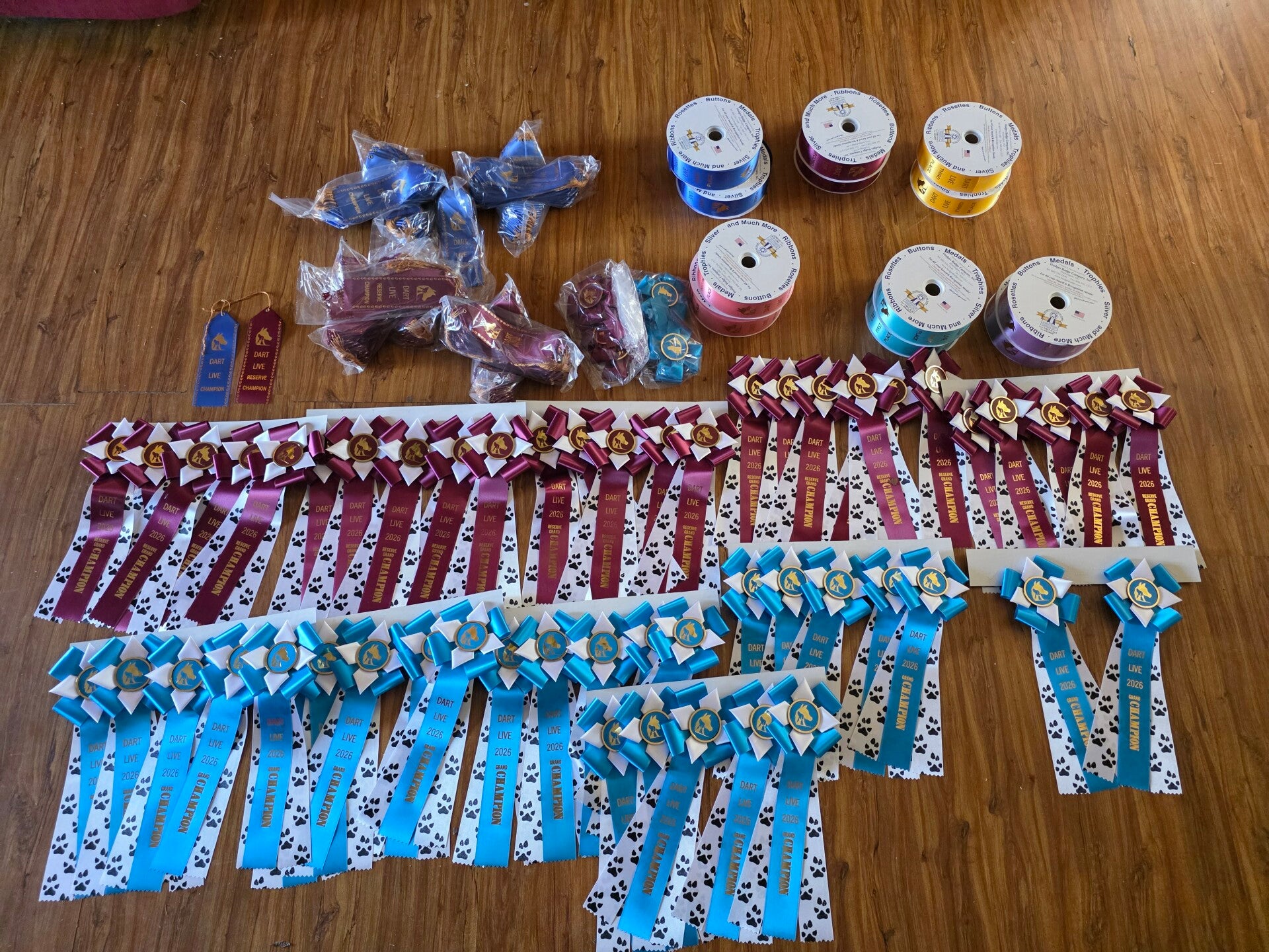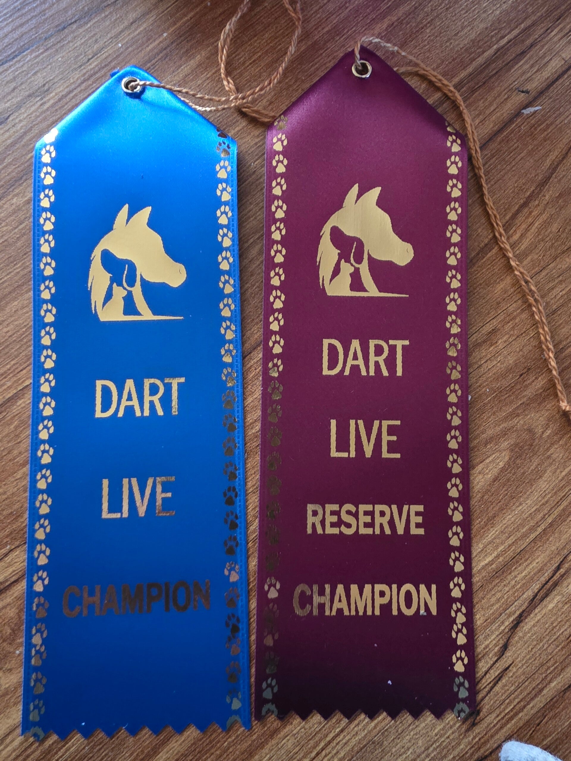 For those who achieve the pinnacle in their classes, DART Live Model Horse Show presents beautiful satin flats for 1st, 2nd, and 3rd place. Each flat proudly features the distinctive DART logo, symbolizing dedication and success in the model horse arena. These awards are a testament to the skill and artistry of our entrants.